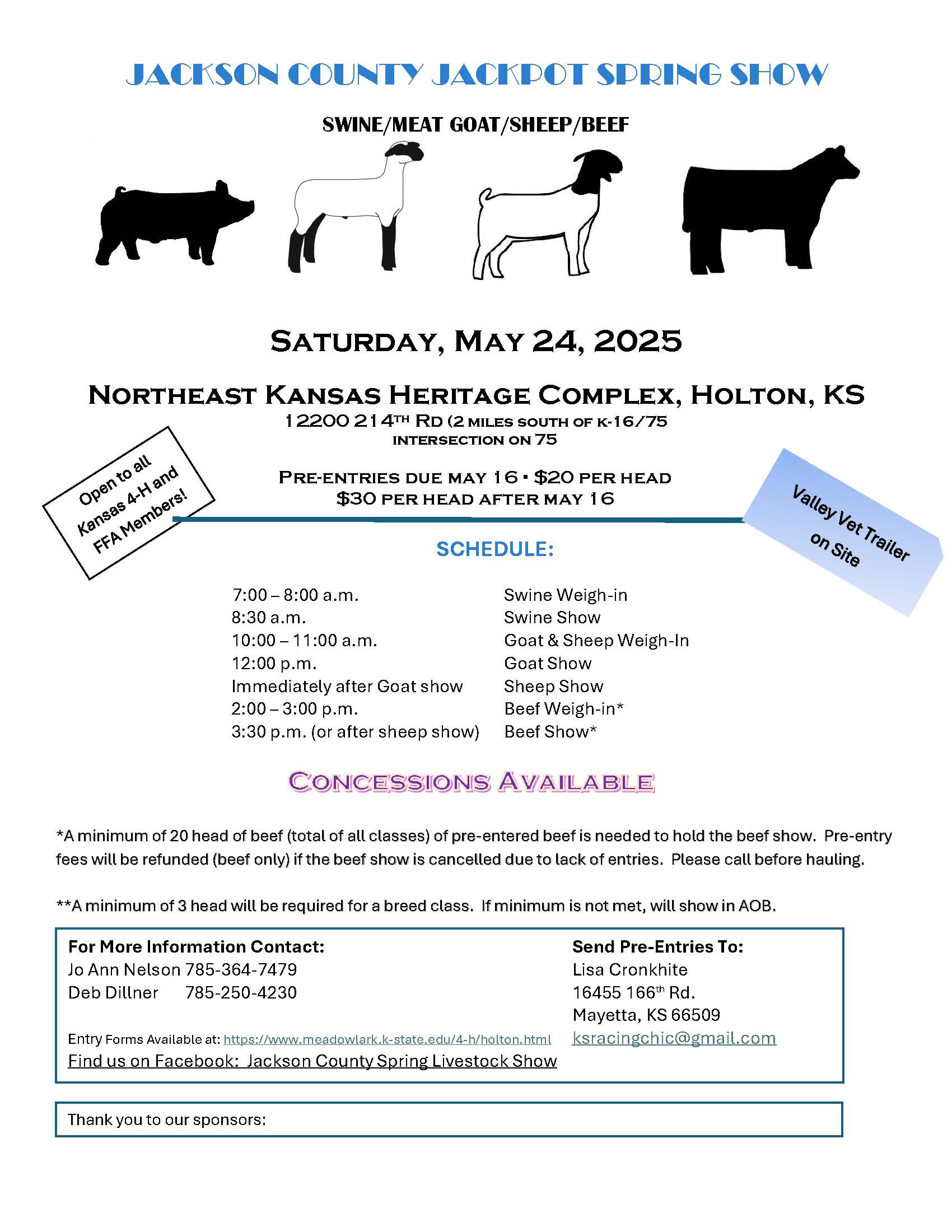 4-H Council meetings are held every other month on the 2nd Thursday. The next 4-H Council Meeting is at 7:00 PM on February 12, 2026 at the Northest Kansas Heritage Building.